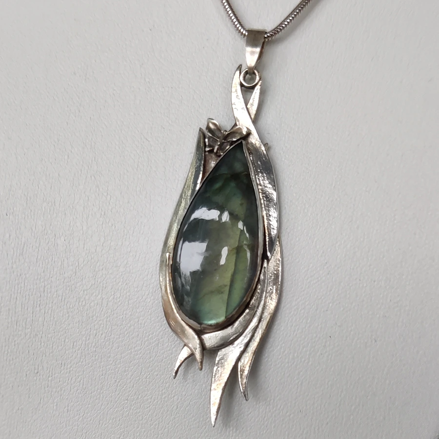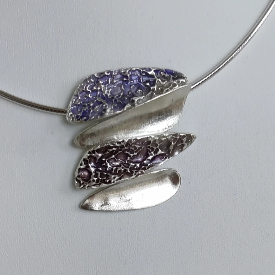 Zilverklei is gerecycled zilver, afkomstig uit onder andere oude printplaten en batterijen. Het materiaal biedt volop mogelijkheden om te werken met vloeiende lijnen en organische vormen — een stijl die kenmerkend is voor haar werk. De natuur van het eiland waar zij is opgegroeid, komt dan ook vaak terug in subtiele details.