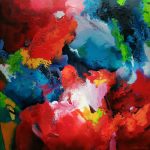 figuratief abstract. Mijn werk is een zoektocht naar de maximale uitdrukkingsmogelijkheid van mijn gevoel. Weergegeven door middel van kleur, vorm en compositie. Ik sta open voor dat wat zich zomaar aandient.